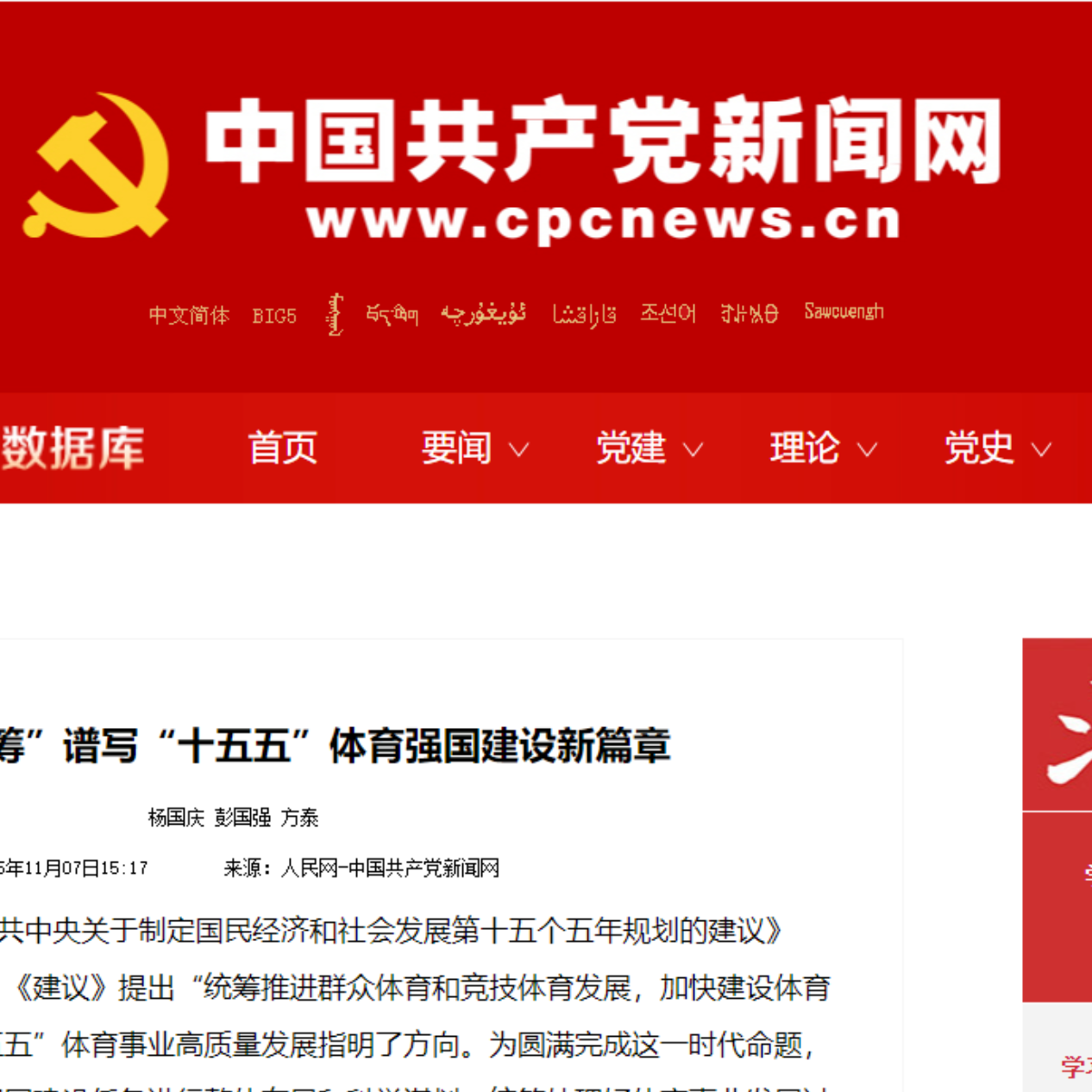 中国共产党新闻网发表我校原校长杨国庆等的文章《以“六个统筹”谱写“十五五”体育强国建设新篇章》