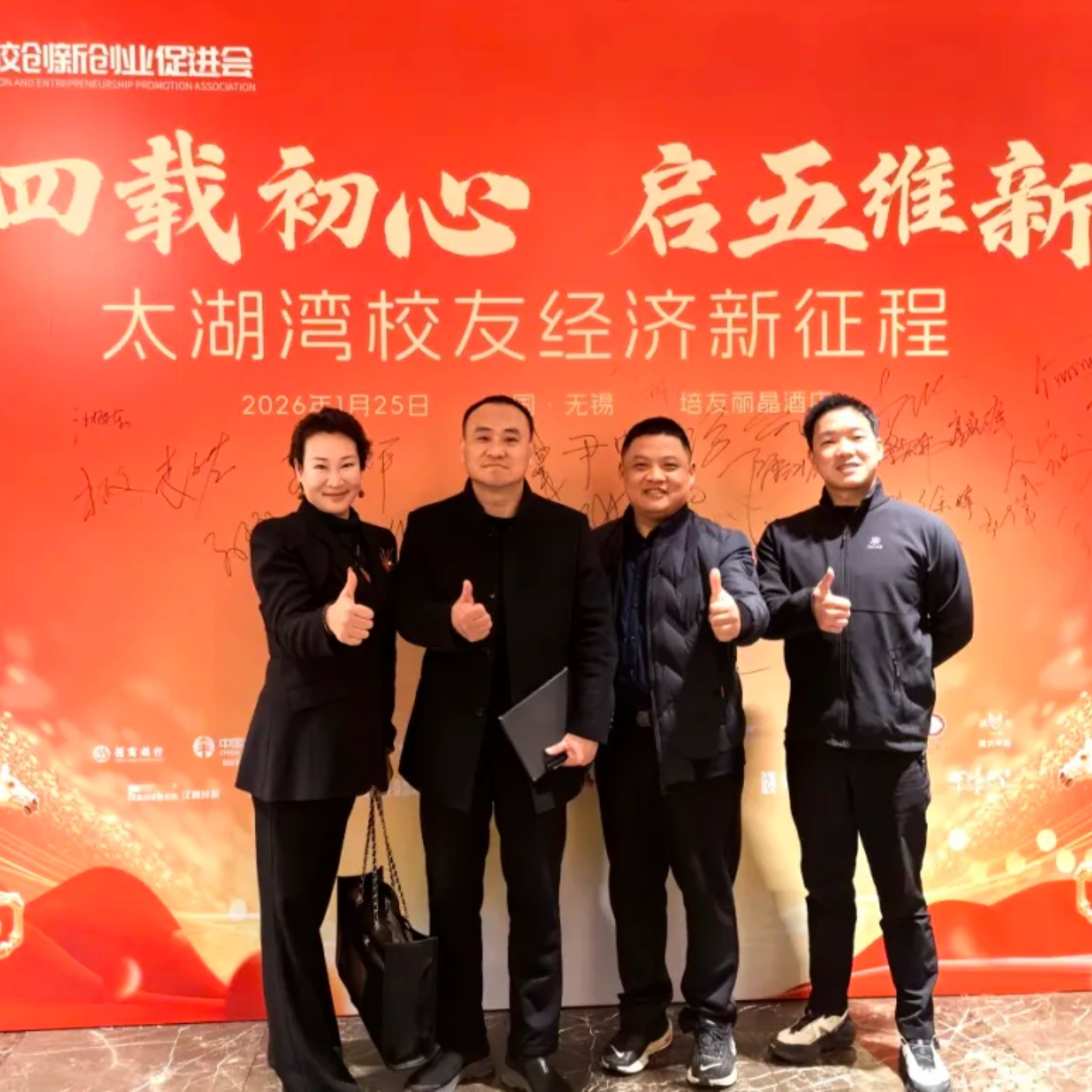 凝心聚力 共创未来|南京体育学院无锡校友会成功当选无锡太湖湾高校创新创业促进会理事单位无锡市委组织部人才处处长、校促会创始人袁晓雷与南体无锡校友会代表校促会文体专委会成员2026年1月25日,以“凝心聚力 共创未来”为主题的无锡太湖湾高校创新创业促进会(以下简称为校促会)二届十次理事会、二届二次会员大会暨年会在无锡培友丽晶酒店顺利召开。无锡市委组织部人才处处长、校促会创始人袁晓雷,校促会成员及各校友会代表齐聚一堂。南京体育学院无锡校友会会长于吉伟、常务副会长张蕾、副秘书长李文伟出席本次大会。在校促会二届二